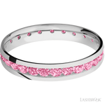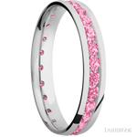 CC4DETERNITYLABDARKPINKDIA.07CH 4 mm wide/Domed/Cobalt Chrome band with an Eternity arrangement of .07 carat Round Lab Dark Pink Diamond stones in a Channel setting.