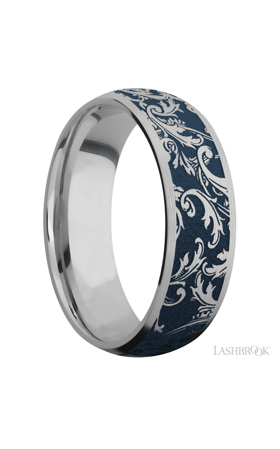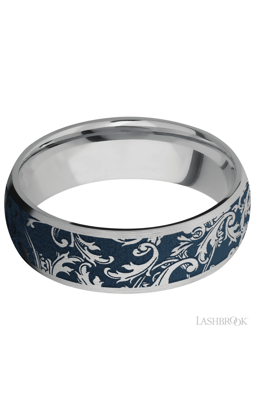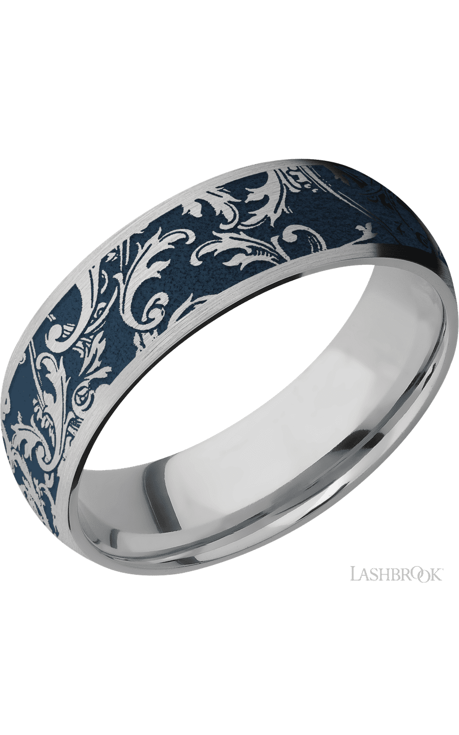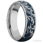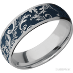 7D/LCVBLACKLEAF/A 7 mm wide/Domed/Titanium band with a laser carved Black Leaf pattern.