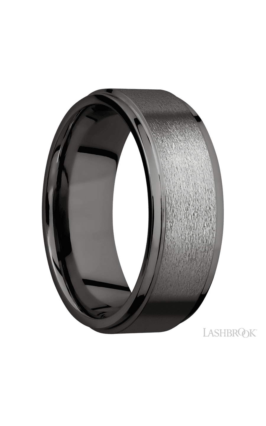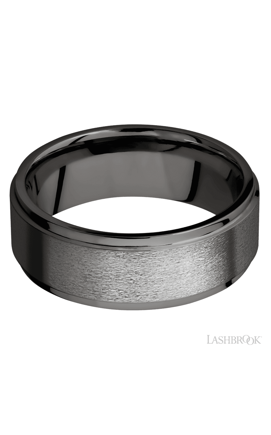 8 mm wide Flat Grooved Edges Tantalum Noir band.
